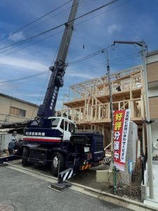 こんにちは、京都市内の新築物件がいよいよ上棟日を迎えました